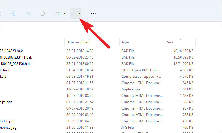 - Click on the 'List view' icon next to the 'Thumbnail view' icon at the bottom-right corner.