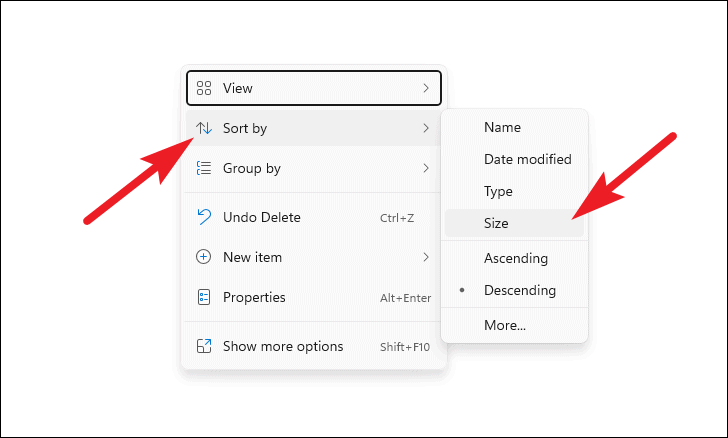 - Hover over the 'Sort by' option and choose an attribute to sort the files by, such as 'Size'.