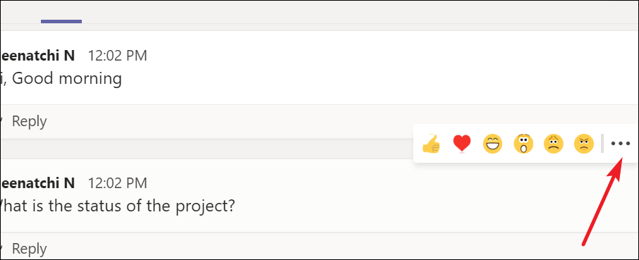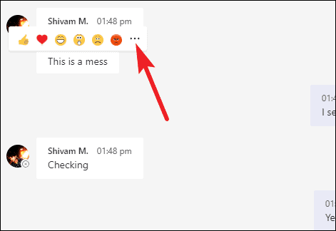 Go to the message and hover on it. A few options will appear. Click the ‘three-dot’ menu.