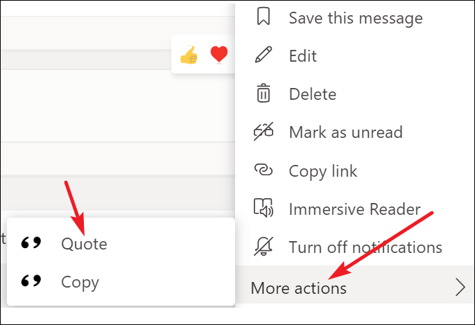 From the menu options, move your mouse over to the ‘More actions’ option and select ‘Quote’ from the expanded options.