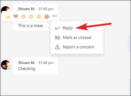 Microsoft Teams does have a reply option in the desktop/ web app, but only if you’re using a personal account. For organization account, there’s no direct option, but there are workarounds.