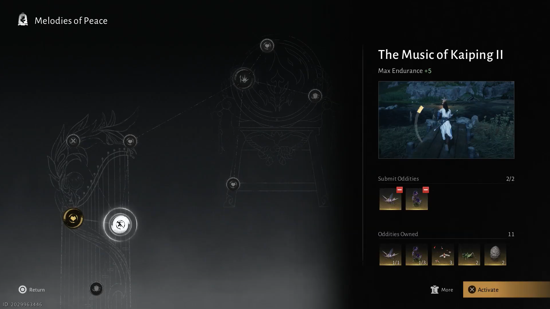 Step 2: Open the Melody of Peace interface through the trader. Here, you can trade in oddities to unlock upgrades and route your Exploration progression into perks like new Exploration Skills.