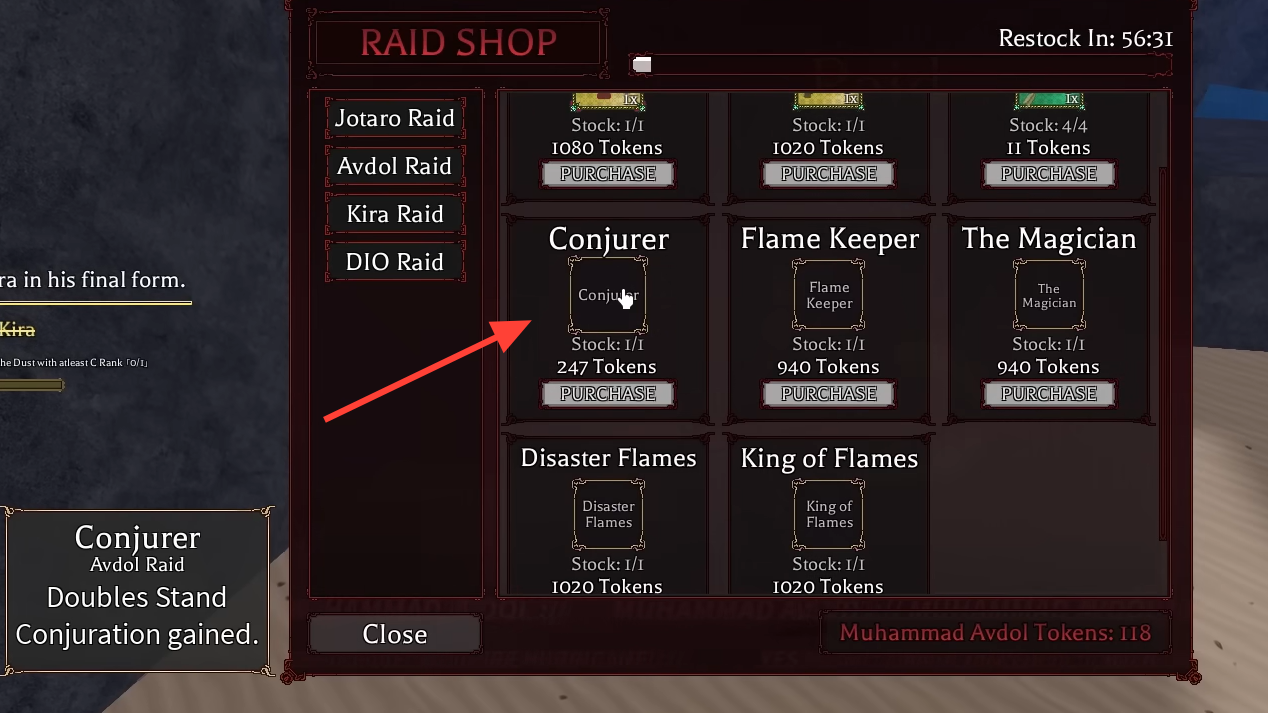 Step 3: Open the shop and purchase the Conjurer passive using raid tokens.