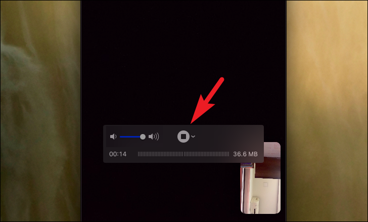 Once the FaceTime call has been completed and you wish to end the recording, click on the ‘Stop’ icon present on the menu bar situated on the topmost section of your screen. Once the recording has stopped, you will be able to see the thumbnail of the recording in the bottom right corner of the screen.
