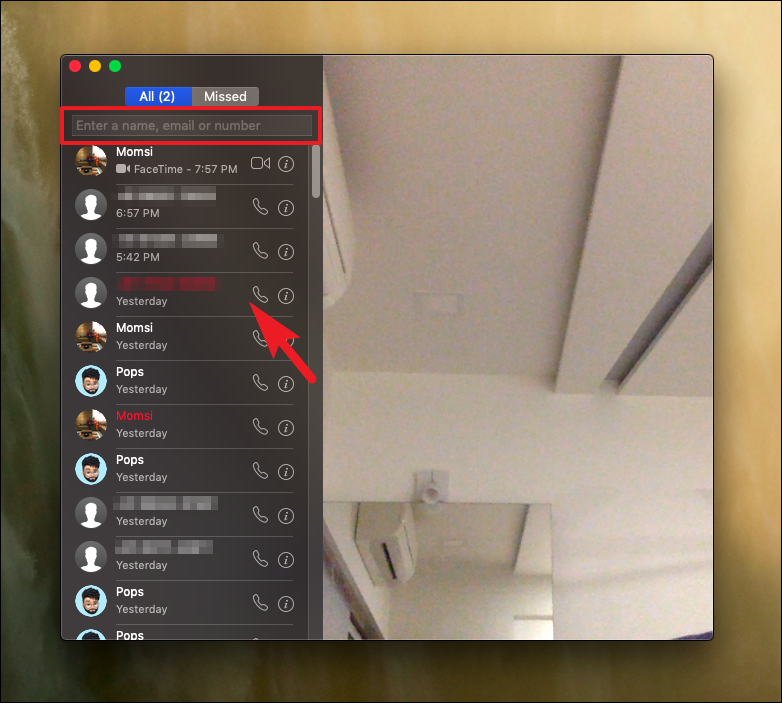 Next, from the FaceTime window, click on a contact tile from the list to initiate the FaceTime call. Otherwise, you can also search for a contact using the Search bar situated on the topmost section of the sidebar present on the FaceTime window.