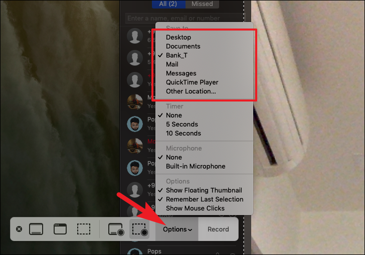 Then, under the ‘Save to’ section click to select the location you wish to save the recording. To select a location manually using the ‘Finder’, click on the ‘Other location’ option to browse.