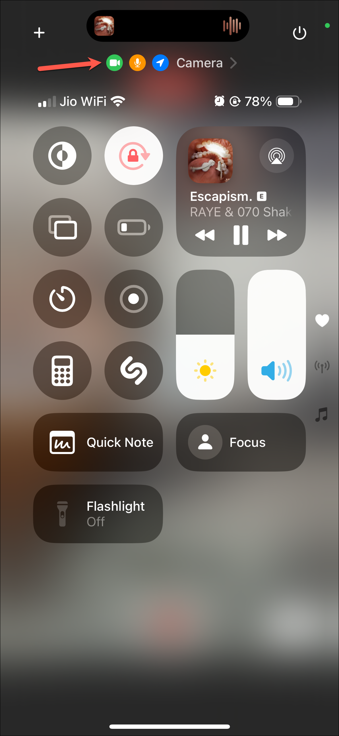 - While you're recording the video, you can also play/ pause the song or change it from the Control Center and it won't stop the video. Unfortunately, you cannot access music controls from the Dynamic Island in the Camera app, but you can after you open the Control Center.