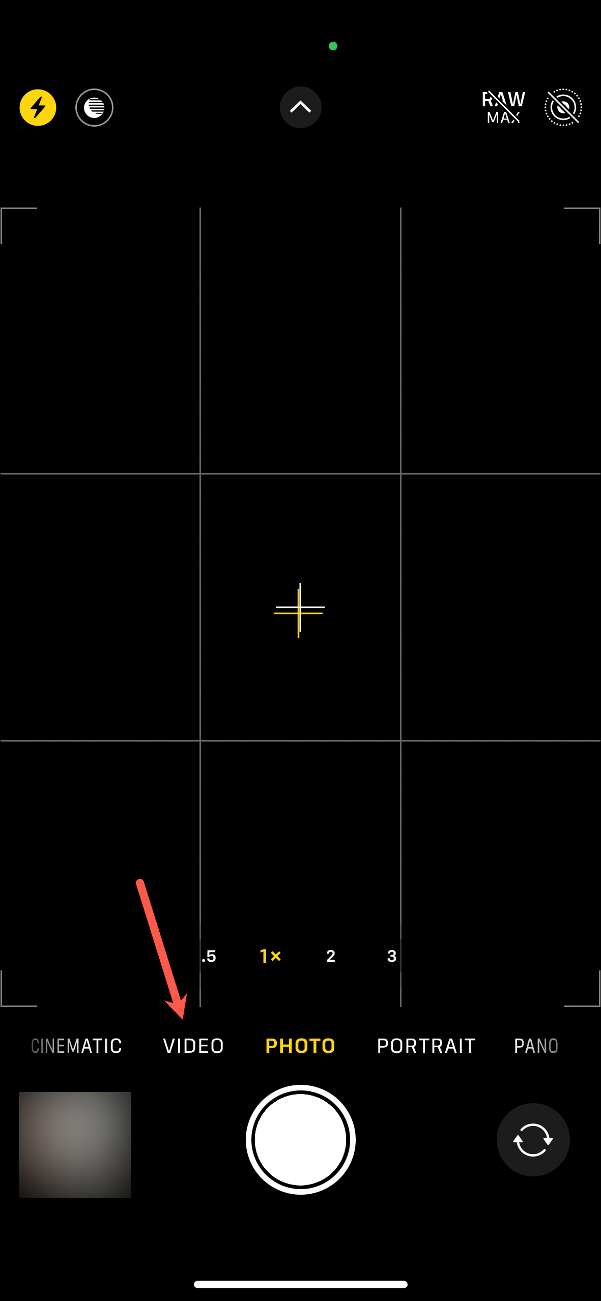 - Open the Camera app and switch to 'Video' from the viewfinder at the bottom.