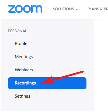 Once the meeting is over, you can access the meeting recording from the Zoom Web portal. Go to zoom.us and log in with your Zoom account. Then, from the navigation menu on the left, go to ‘Recordings’ under Personal.