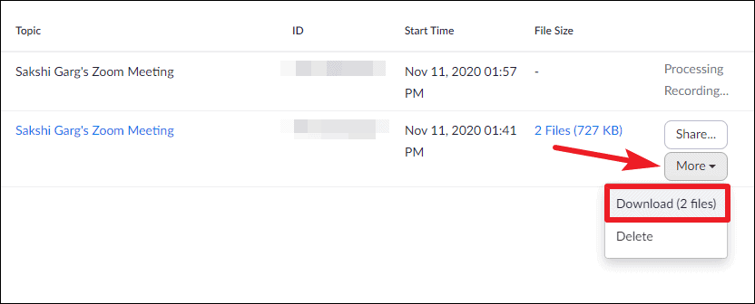 Go to ‘Cloud Recordings’, and you’ll find the recording.
