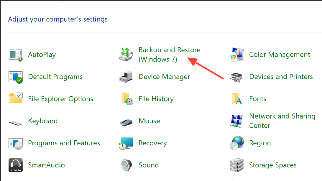 Step 1: Open the Control Panel and navigate to System and Security > Backup and Restore.