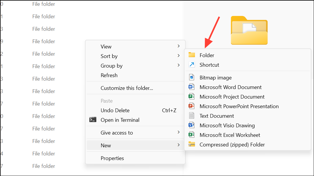 Step 2: Right-click in the folder, select New > Folder, and name it Desktop (without quotes).