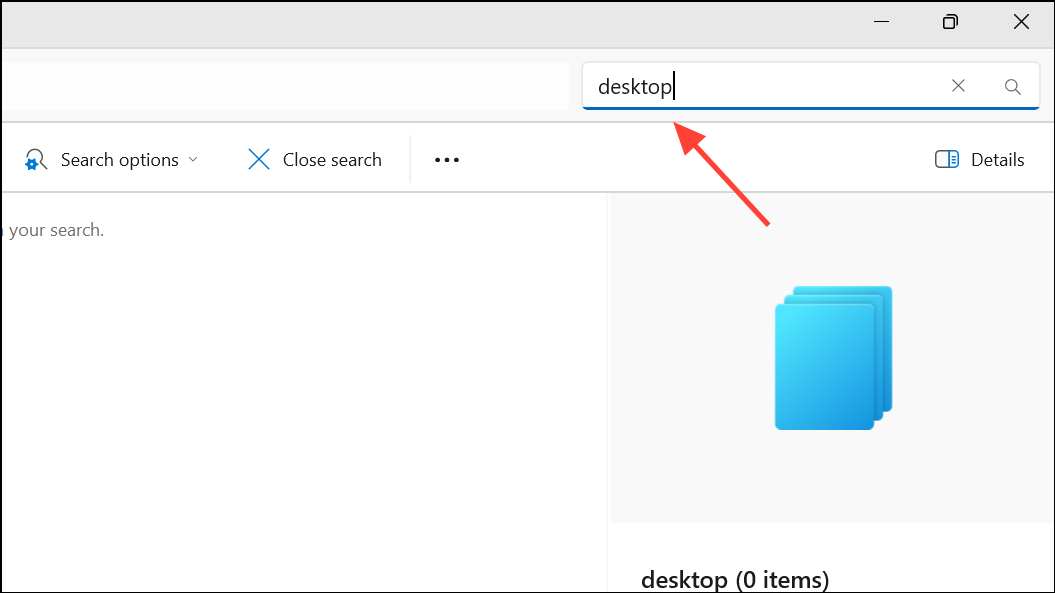 Step 3: Use the search bar in File Explorer or the Start menu to search for "Desktop" and see if the folder was moved to another location.