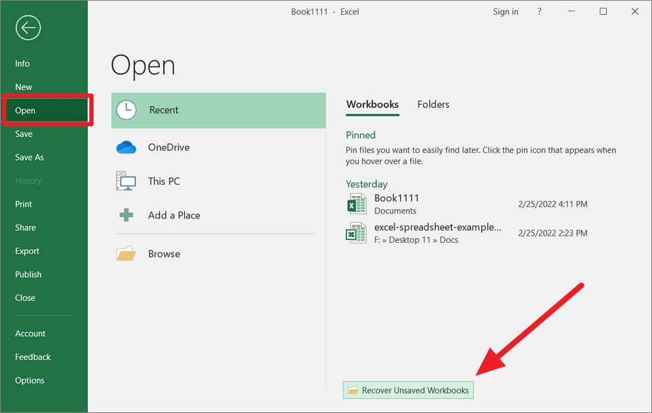 Recover an Unsaved Excel File