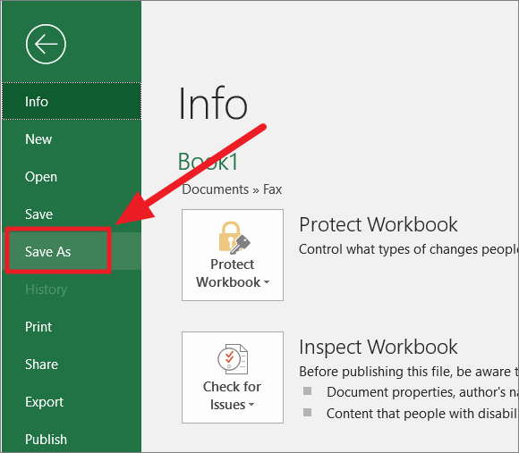 Go to the ‘File’ tab and select the ‘Save As’ option from the left-hand panel.