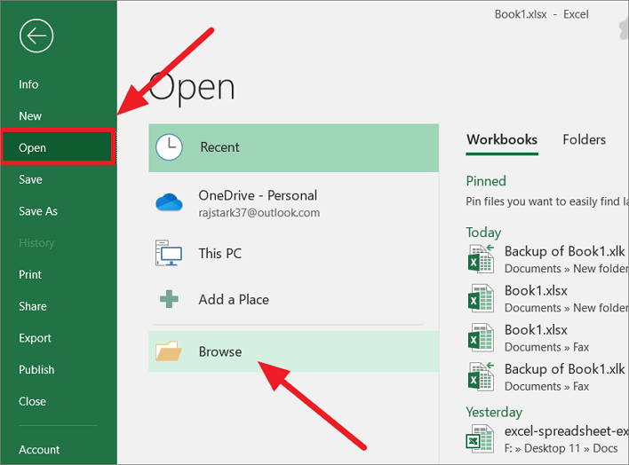 As we mentioned earlier the AutoRecover feature automatically saves unsaved and auto recovered Excel files in the hidden AutoRecover folder. So, you can easily recover the overwritten or accidentally changed/saved over Excel files from this folder. Here’s how you can recover these files: