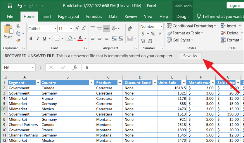 Once the file is recovered and opened in Excel, you will see a prompt to save it. Now, click on the ‘Save As’ button to save the file to the desired location.