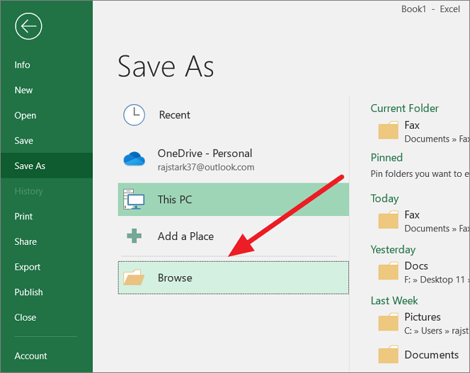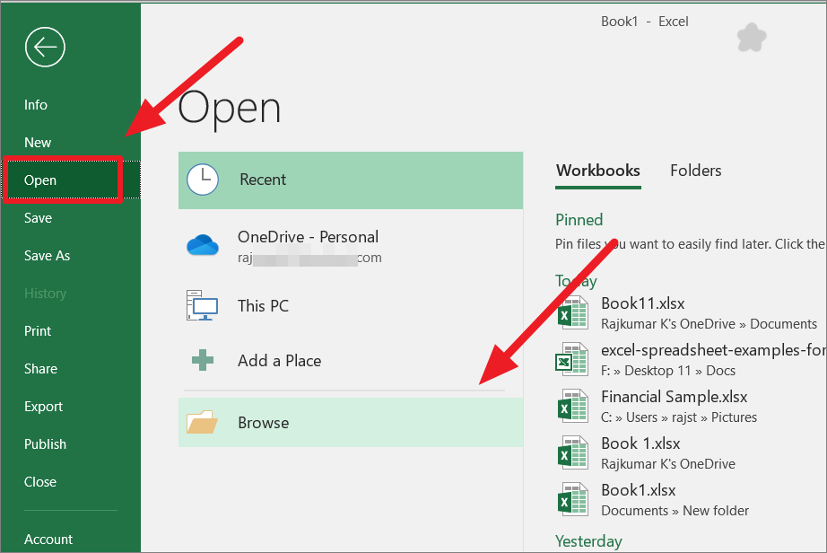 Alternatively, you can go to the ‘File’ tab and click the ‘Open’ option. Then, click the ‘Browse’ button and navigate to the location where the file is located.