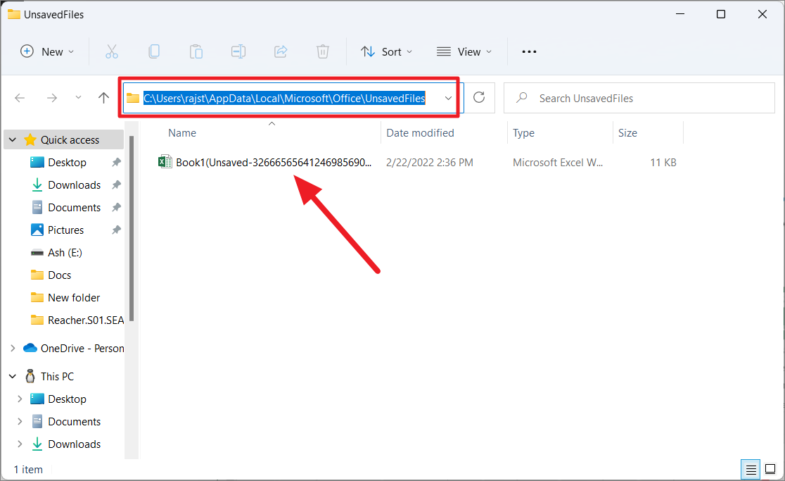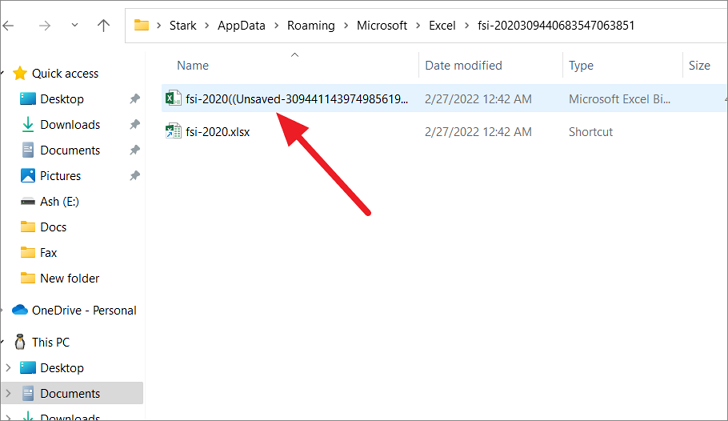 Alternatively, you can also navigate to the above ‘UnsavedFiles’ folder directly through File Explorer and recover your unsaved Excel workbooks.