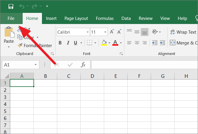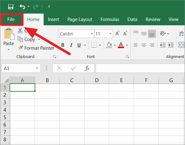 First, open Microsoft Excel and tap/click on the ‘File’ tab.