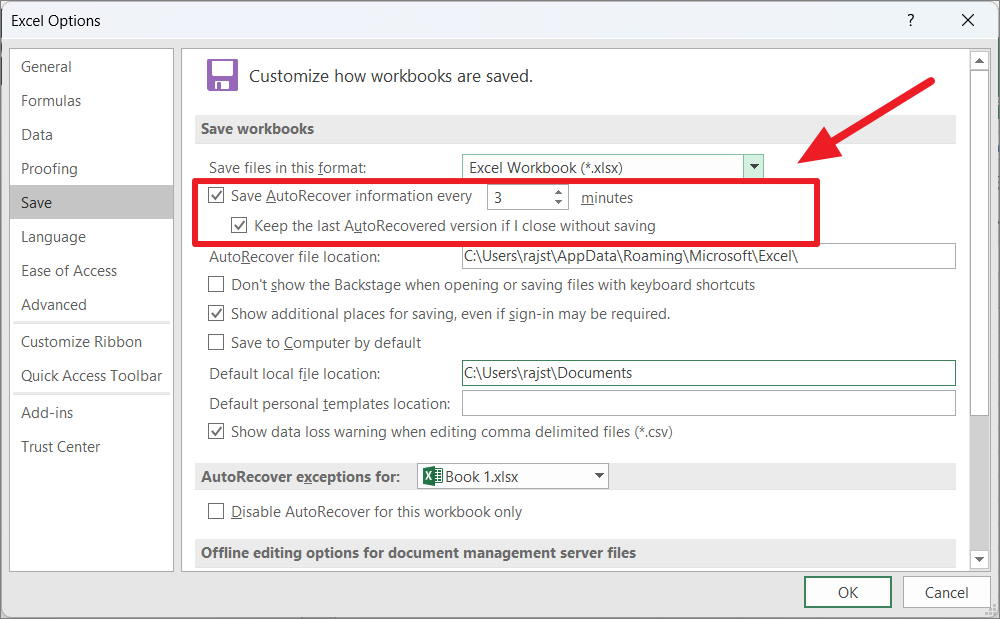 Configure AutoSave and AutoRecover Options