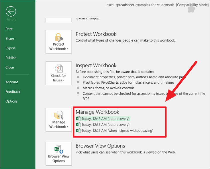 There are also other cases when you have accidentally overwritten some important data or when you make a mistake that you can’t undo, you may need to restore previous versions of your workbook.