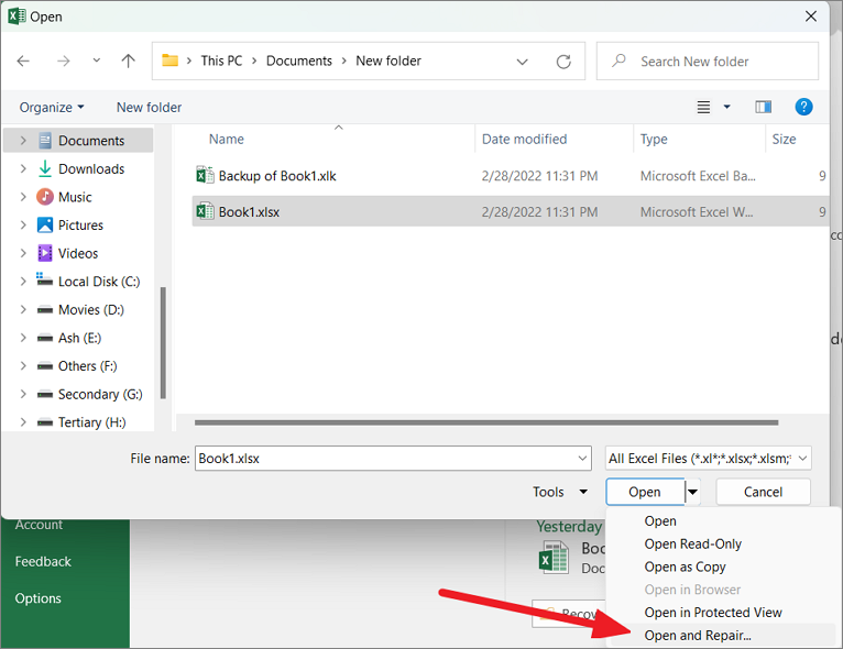 Open Backup Excel file