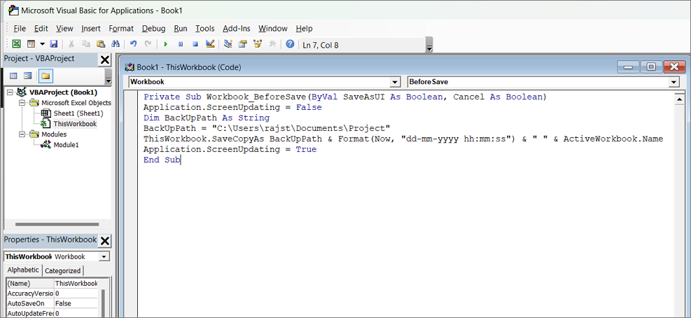 End SubWhere replace C:\Users\rajst\Documents\Project with the location of the folder where you want to save the backup copies on your computer.