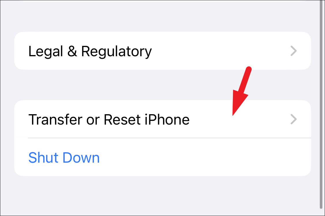 Next, locate and tap on the ‘Transfer or Reset iPhone’ option to continue.