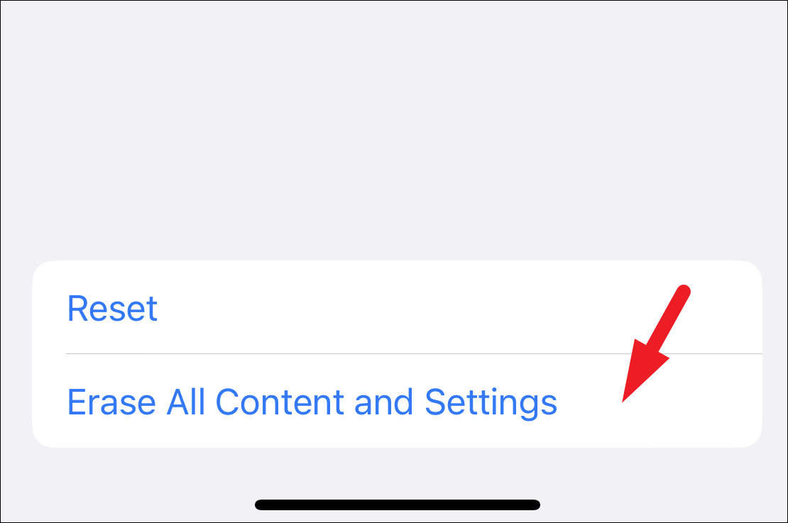 After that, tap on the ‘Erase All Content and Settings’ option to proceed. This will bring an overlay window to your screen.