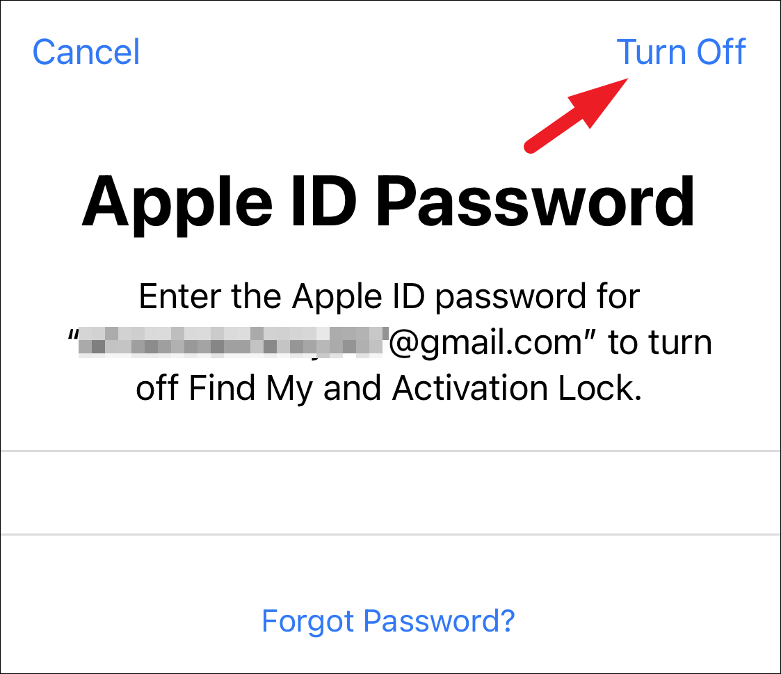 After that provide credentials for your Apple ID and tap on the ‘Turn Off’ button to proceed.