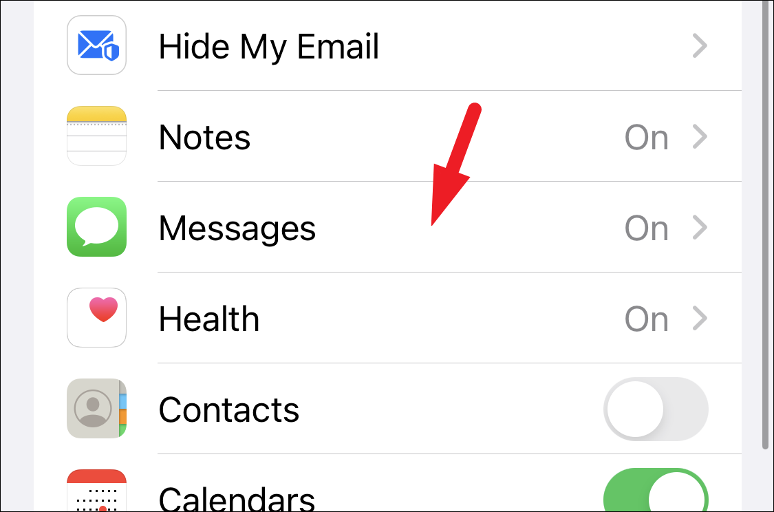 Now, to make sure that the backup will restore your messages, scroll down on the page and check if the backup is turned on for the Messages. If it is turned off, you won’t be able to restore the deleted messages.