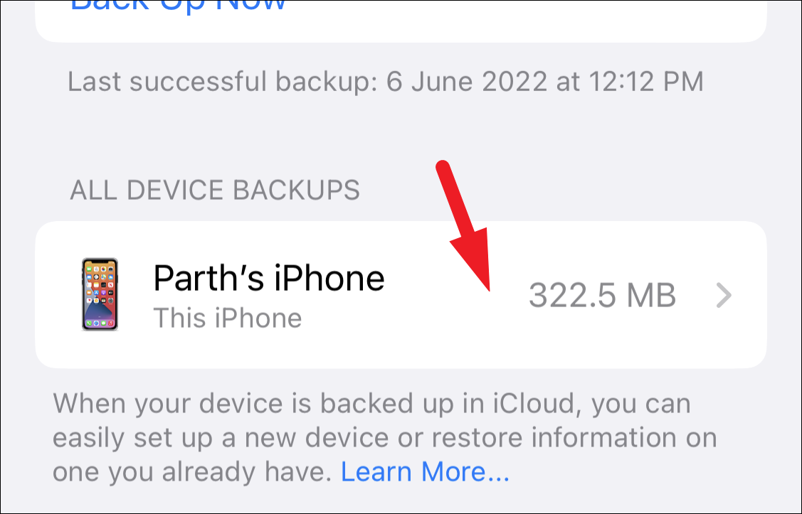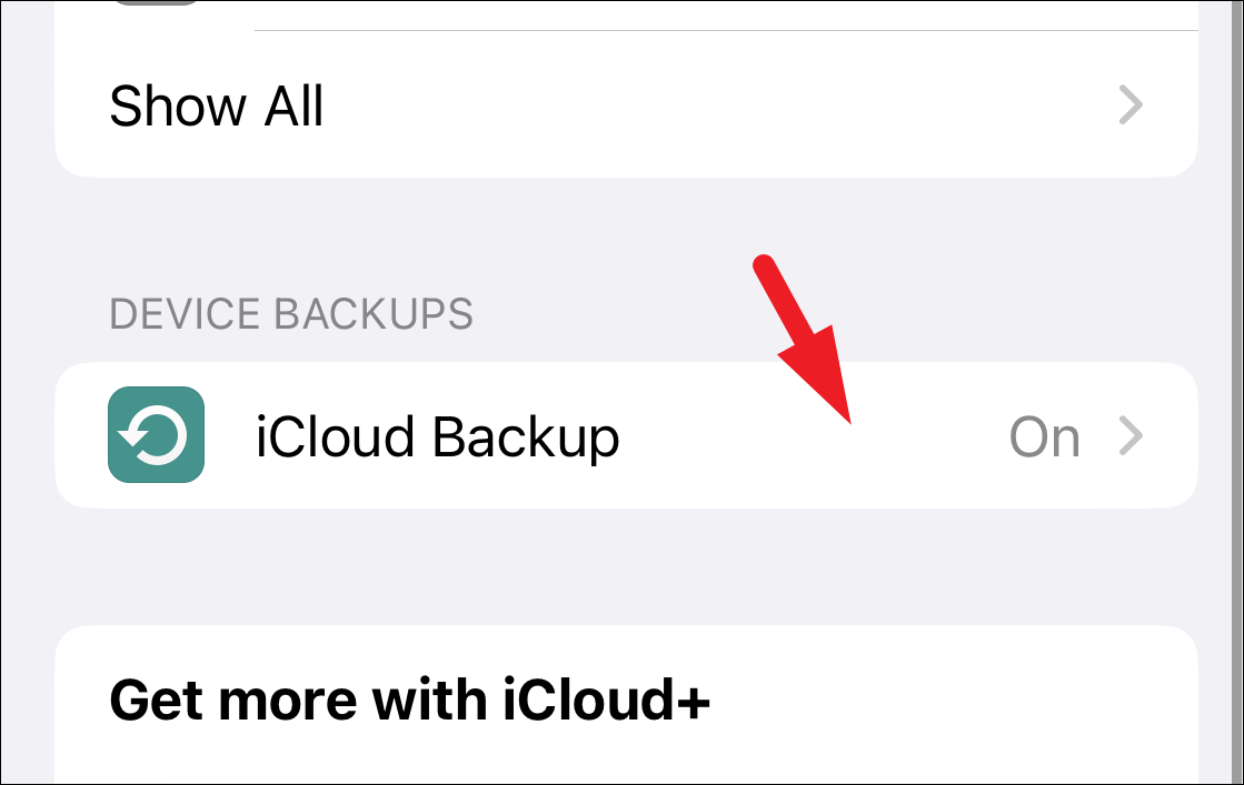 After that, tap on the ‘iCloud Backup’ option from the list.