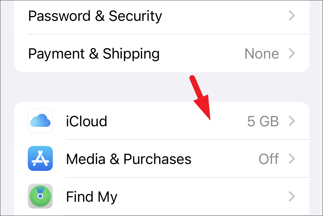 Next, tap on the ‘iCloud’ tile from the list to continue.