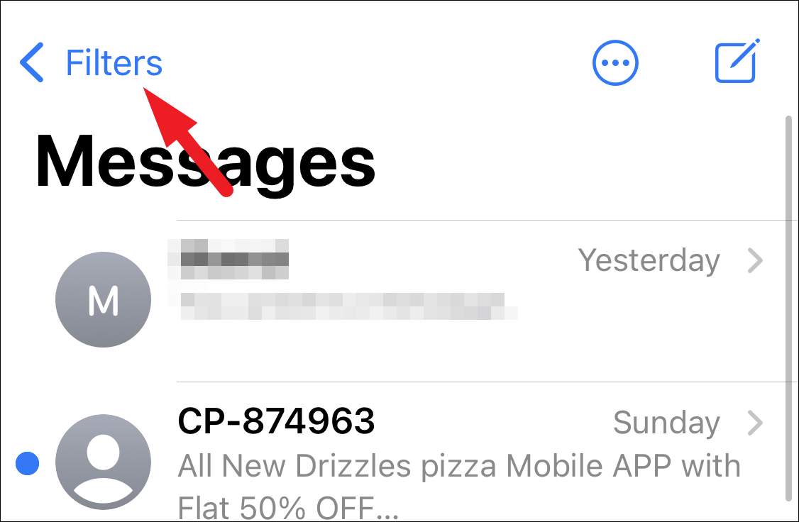 Next, on the messages screen, tap on the ‘Filters’ button in the top left corner to go to the Folder view.