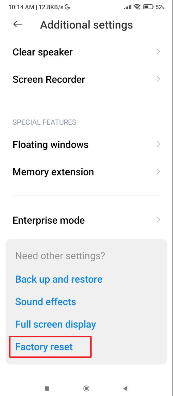 - On the System page, tap on 'Reset options' or 'Factory reset'. Depending on your device, you may find it in the 'Additional settings' section.