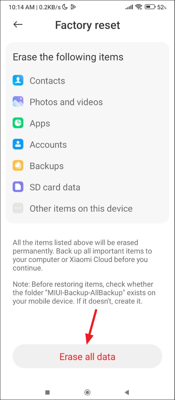- Next, tap on 'Erase All Data' and then follow all the steps to finish resetting your device.