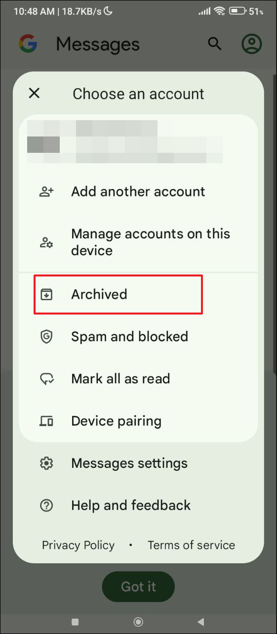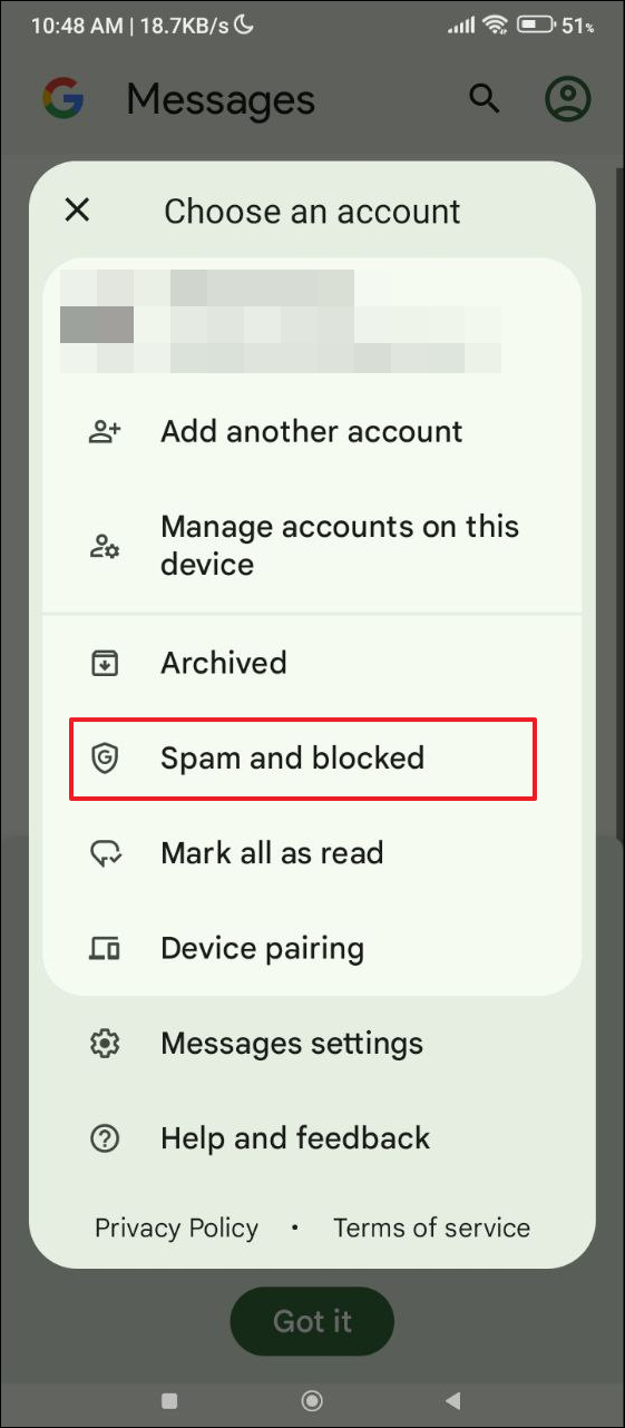 - In addition to the Archive folder, you should check your Spam folder as certain messages are automatically sorted as spam. To do so, tap on the profile icon again in the Messages app and then tap on the 'Spam and blocked' option. This will allow you to check through the messages in the Spam folder.