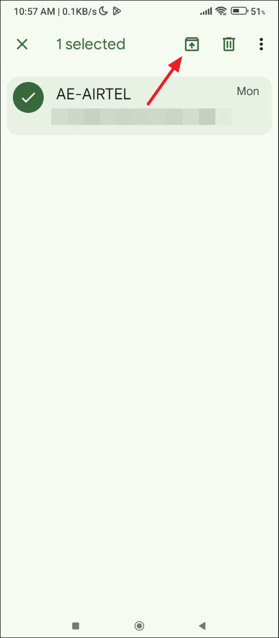 - Then tap on the 'Unarchive' icon at the top to move the message back to the Messages folder.