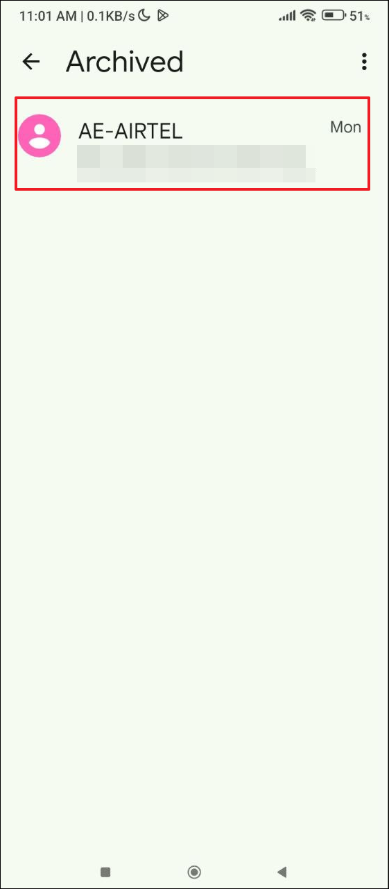 - This will take you to the Archived section which contains all archived messages. Tap and hold a message you want to unarchive.