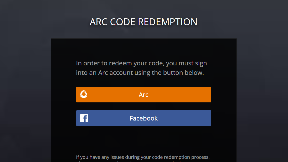 Use this flow for codes meant to be claimed on the Arc Games site. The reward attaches to your Arc account after a successful claim.