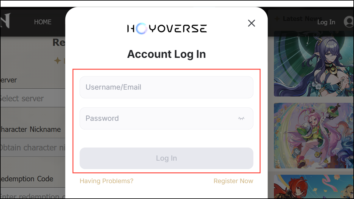 Step 2: Log in using your HoYoverse account credentials. Make sure your account is linked to your current game profile.