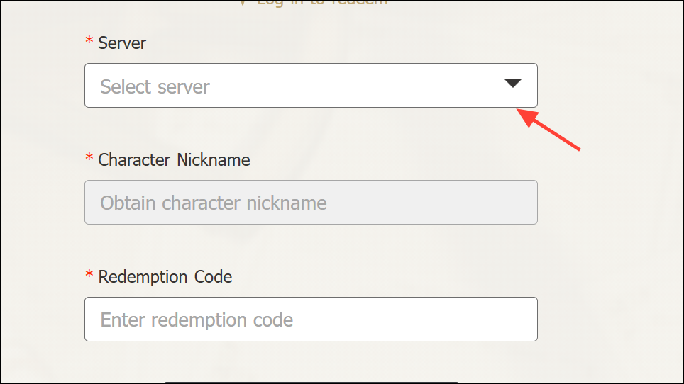 Step 3: Select your server region from the dropdown menu. This must match the server where your main character is located.