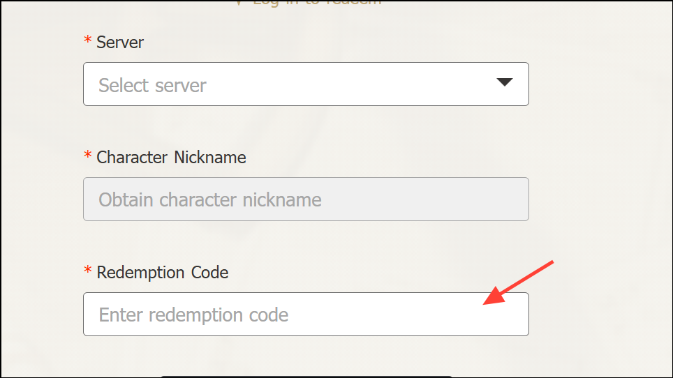 Step 5: Input the active code in the provided field. Codes are case-sensitive, so copy and paste them to avoid errors.