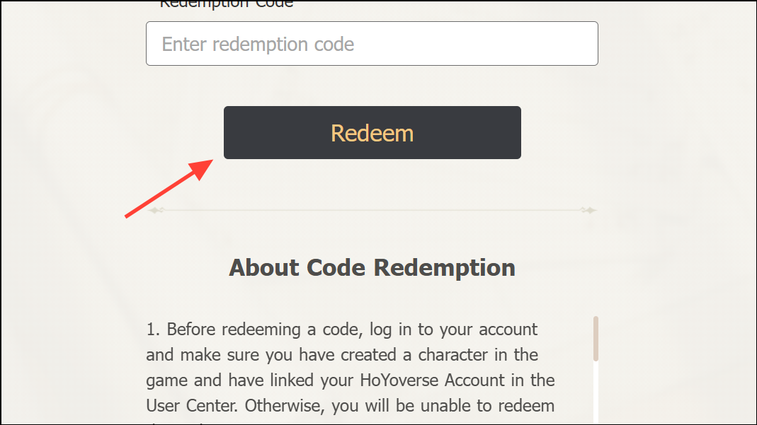 Step 1: Open a web browser and navigate to the official Genshin Impact code redemption page.