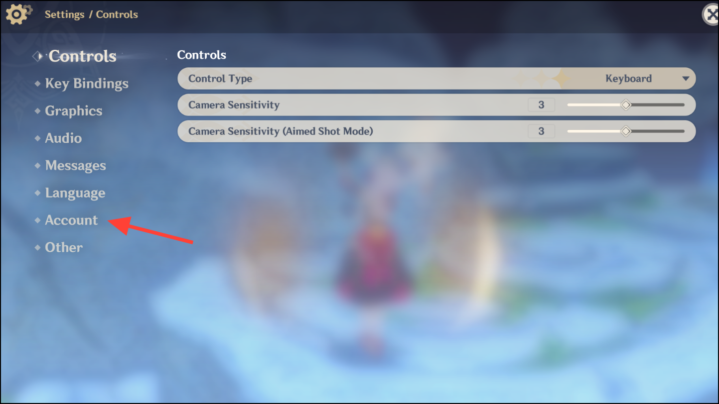 Step 4: Navigate to the Account tab in the left sidebar.