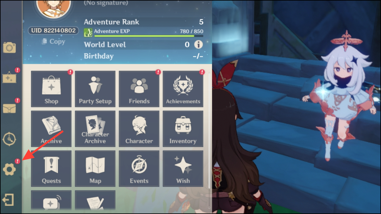 Step 2: Open the main menu by clicking the Paimon icon in the top-left corner.