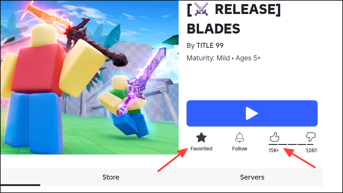 Step 2: Like and favorite the Blades game on Roblox. Developers often link code redemption to player engagement, so make sure to click the thumbs-up and star icons on the game’s page. This step may be checked by the game before allowing code entry.