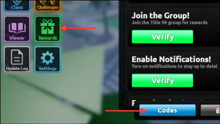 Step 5: Navigate to the Codes tab. Inside the rewards menu, find and select the “Codes” tab. This section is specifically for entering and redeeming code strings.