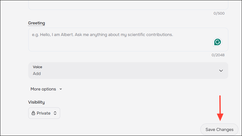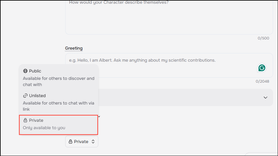Note: If you want, you can also edit the various sections, like the character name, tagline, and bio by entering random text or dashes and replacing the information you provided earlier. This will essentially make the character unusable.